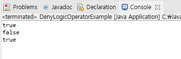 - XOR(배타적 논리합) : 피 연산자 하나는 true, 다른 하나는 false이면 연산 결과가 true