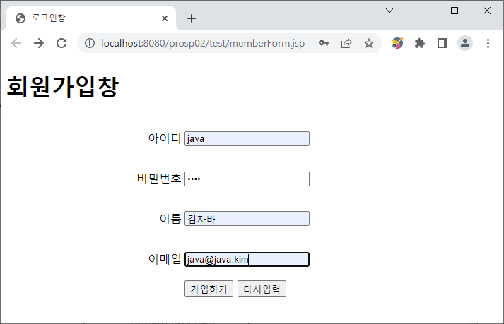 - 브라우저에서 http://locahost:8080/prosp01/test/index.do로 요청