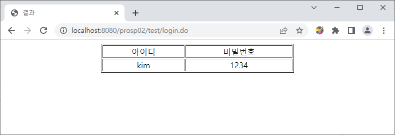 login.do가 실행되며 입력한 데이터가 출력된다.