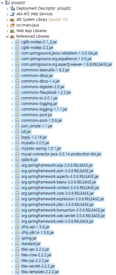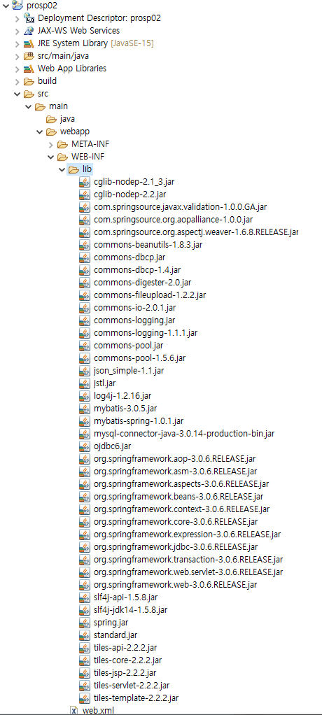 해당 라이브럴리들을 webapp-WEB-INF-lib폴더에 복사-붙여넣기,