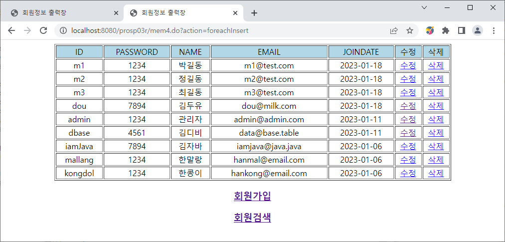 http://localhost:8080/prosp03r/mem4.do?action=foreachInsert 로 요청