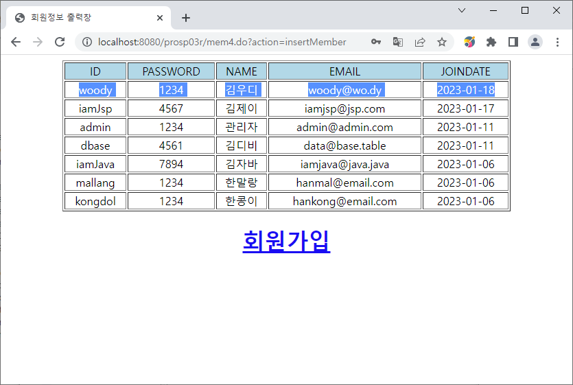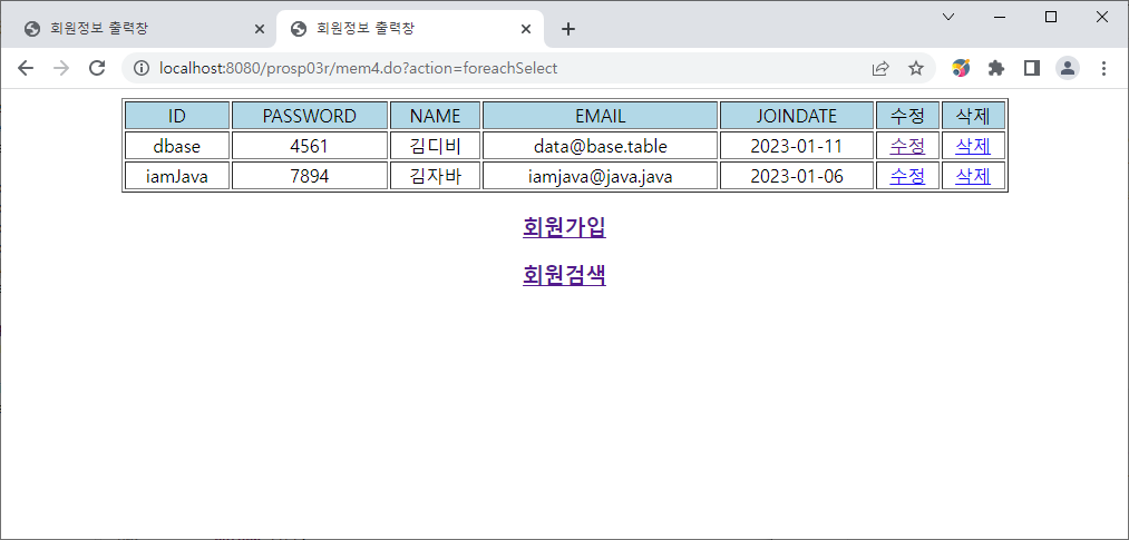 http://localhost:8080/prosp03r/mem4.do?action=foreachSelect 로 요청