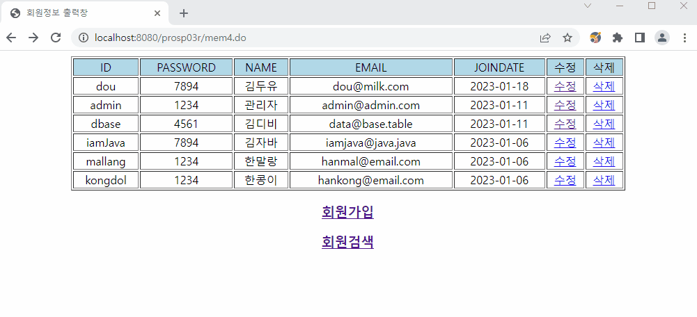 mem4.do호출해서 회원정보 출력창