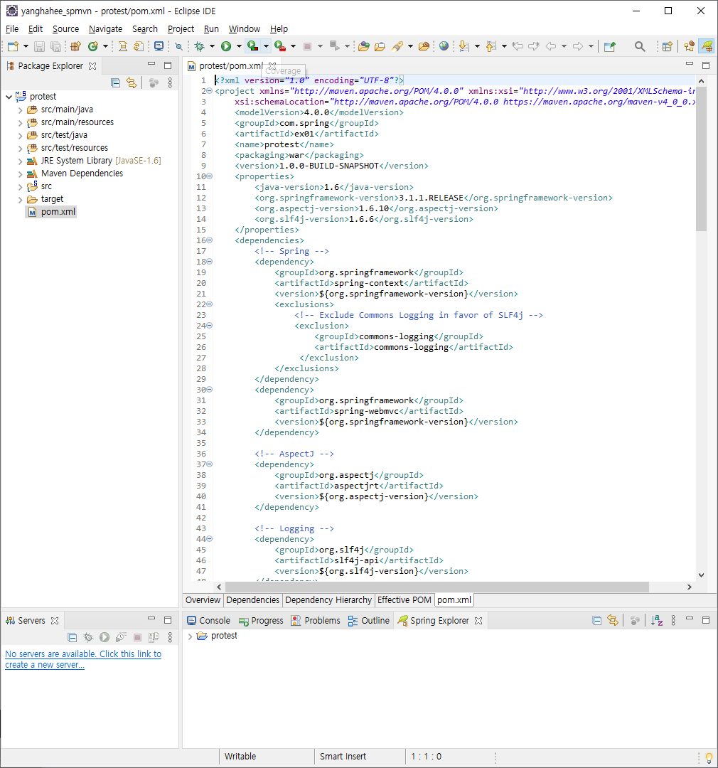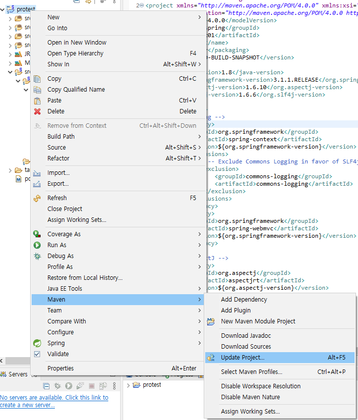 프로젝트를 실행할 때에는 꼭 pom.xml에 들렸다 가야한다.