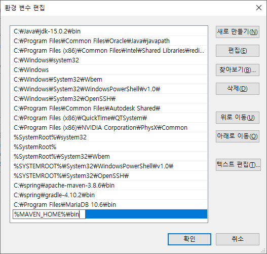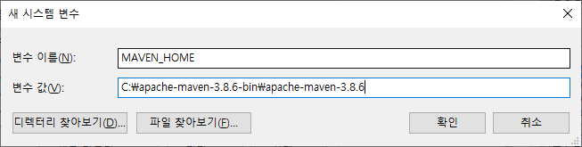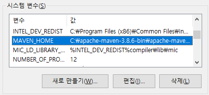 변수 이름을 MAVEN_HOME으로 설정하고