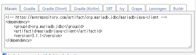 Maven에 해당하는 코드 복사하고