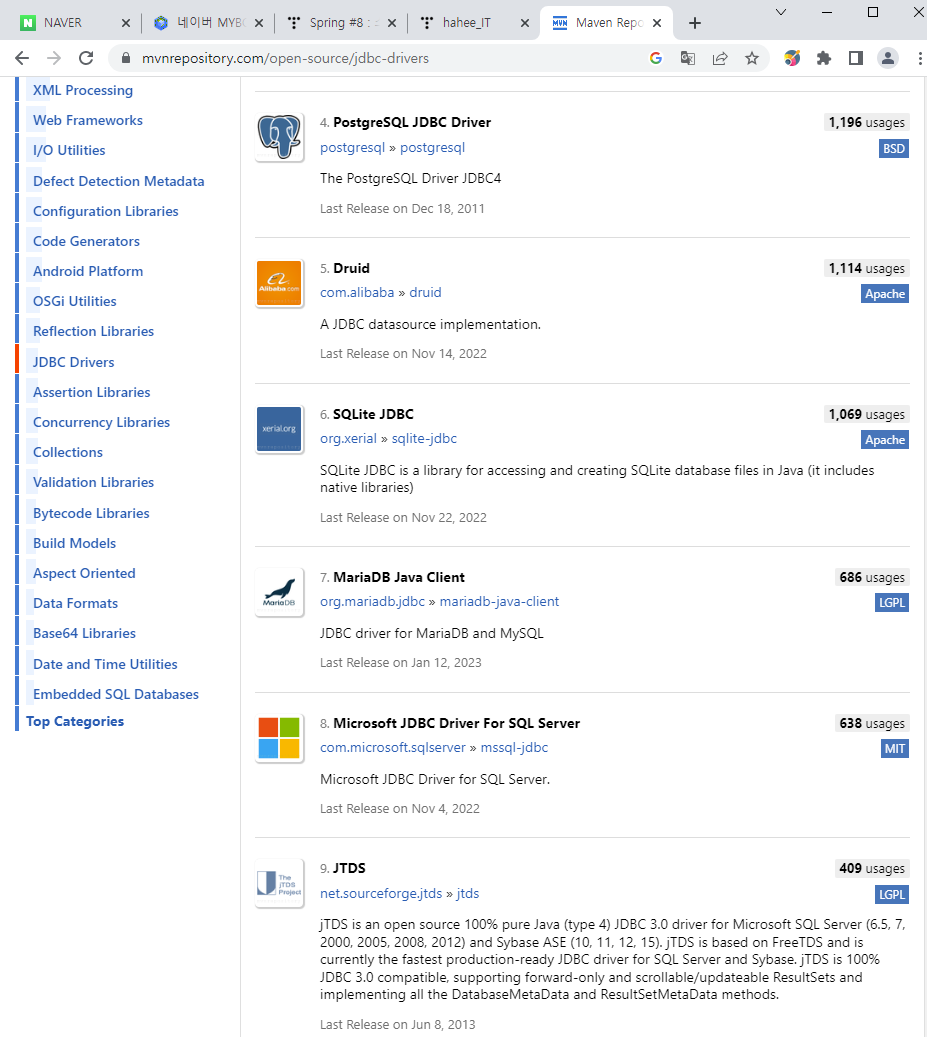 왼쪽 JDBC Drivers클릭,