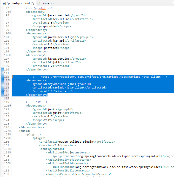 pom.xml에 붙여넣기