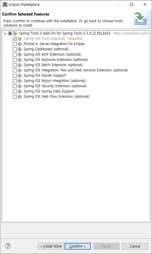 required 만 체크 (나머지는 선택 해제)