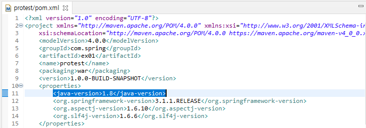 | packaging | 어플리케이션 배포 시 패키징 타입을 설정. war파일로 패키징된다. |