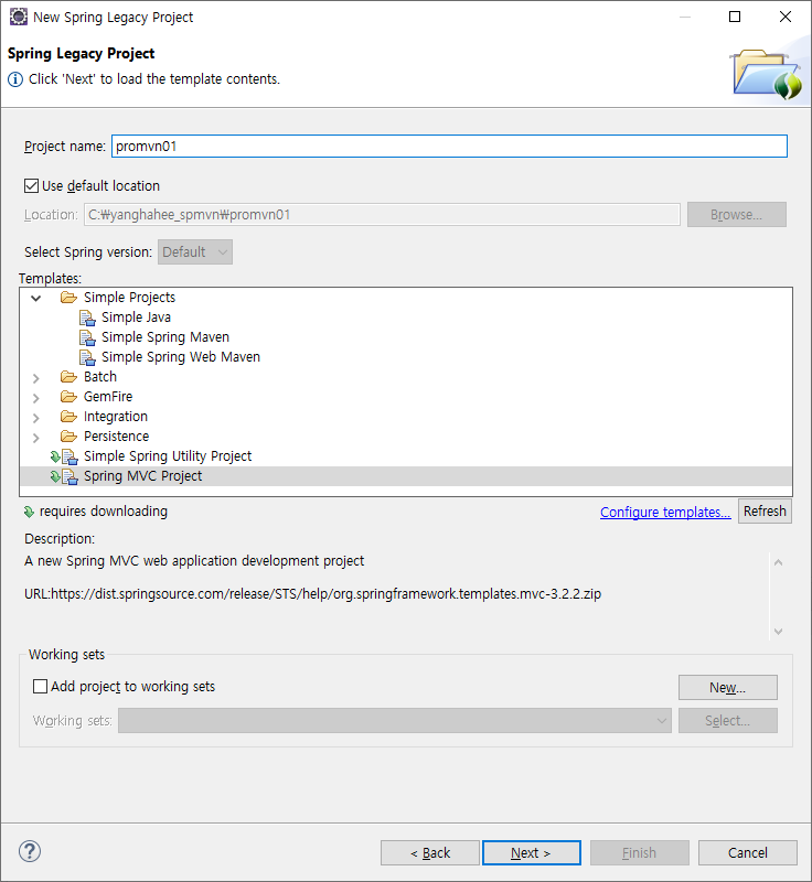 Template을 Spring MVC Project로 선택 후,