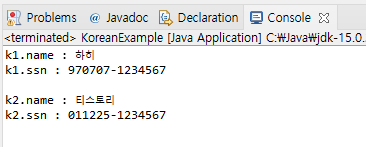 Korean k2 = new Korean("티스토리", "011225-1234567");