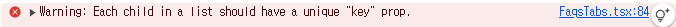 1. FaqsTabs.tsx:84 Warning: Each child in a list should have a unique "key" prop.