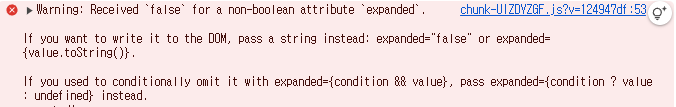2. Warning: Received `false` for a non-boolean attribute `expanded`.