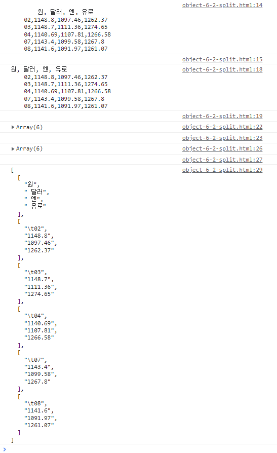 "제품명", "유형", "성분", "원산지"가 배열의 index처럼 사용되는 것이다.