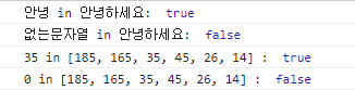 문자열 내부에 어떤 문자열이 있는지, 배열 내부에 어떤 자료가 있는지