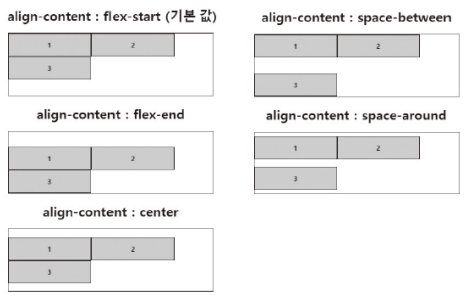 align-content: flex-start | flex-end | center | space-between | space-around