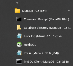 시작화면에서 MariaDb폴더의 Command Prompt창 띄우기