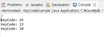 A에 해당하는 키코드(유니코드)가 출력된 것을 확인할 수 있다.