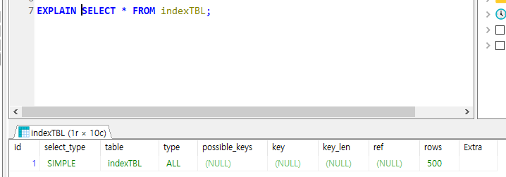 ** EXPLAIN : 실행될 때 어떤 방식 으로 실행되는지 (실행 계획Execution Plan), 인덱스가 없을 때의 query 작동