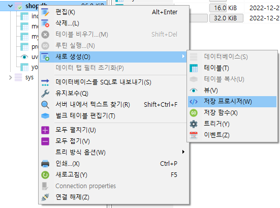 - CALL 프로시저명() 또는 EXECUTE 프로시저명()