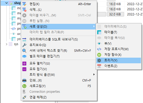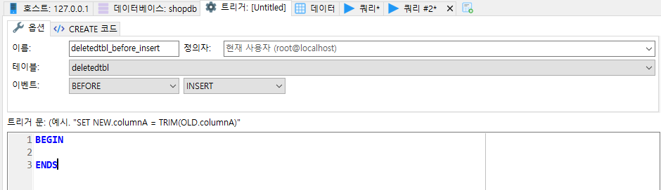 (ex 백업 테이블에 지워진 데이터를 기록하는 트리거 생성)