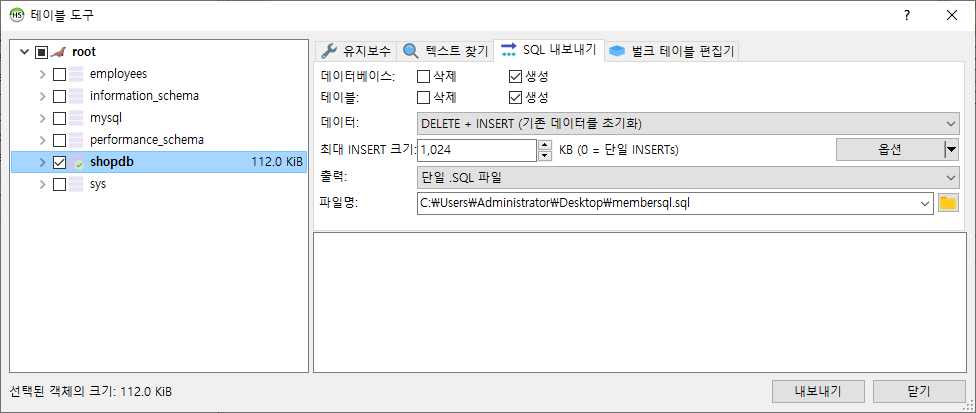 내보내기하여 저장하면, 삭제하고 복원 가능함!