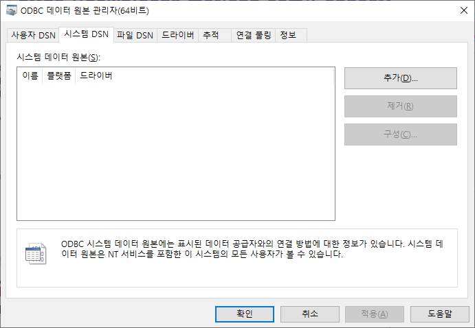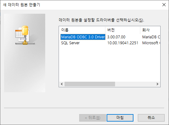 시스템 DSN에 MariaOdbc가 추가되었다!