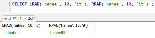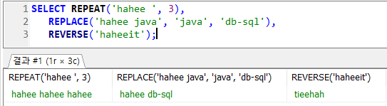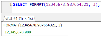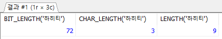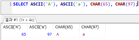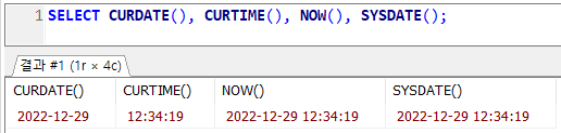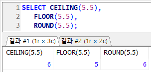 - SELECT IFNULL(NULL, '널'), IFNULL(10, '널'); -> 널, 10 출력