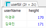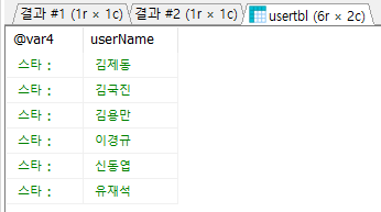 - EXCUTE myQuery USING @myVar1; : LIMIT ?에 USING 뒤 변수를 ?에 대입하고, myQuery에 저장된 쿼리문 실행