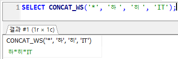 SELECT CONCAT('10', '20') ; -- 문자열 연결