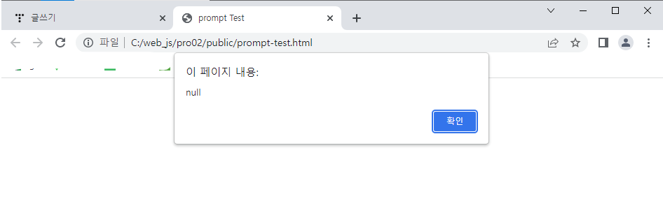 prompt 함수는 사용자로부터 내용을 입력받아서 사용한다.