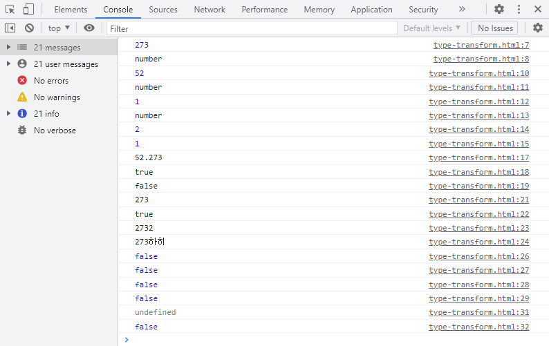 F12 를 눌러 Console창으로 가서 해당사항을 확인할 수 있다.