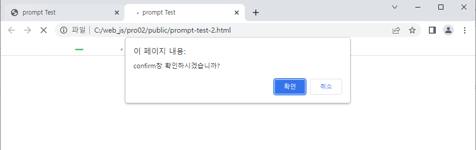 confirm()함수는 prompt()함수와 비슷한 형태로 사용된다.