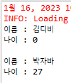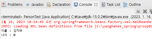 - name 속성 값은 person.xml에서 태그로 설정한 값이 출력되지만 age 속성 값은 0이 출력(디폴트값)