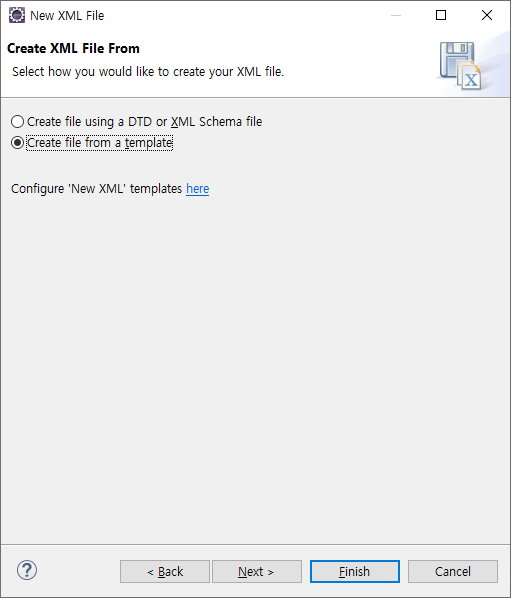 Create file from a template한 후, Finish.