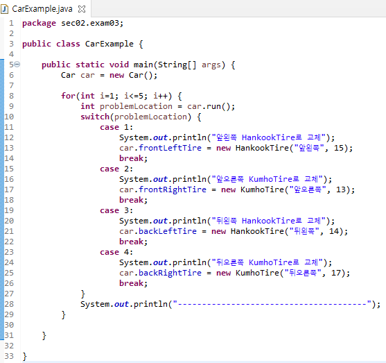 매소드 재정의와 타입변환으로 다형성 구현