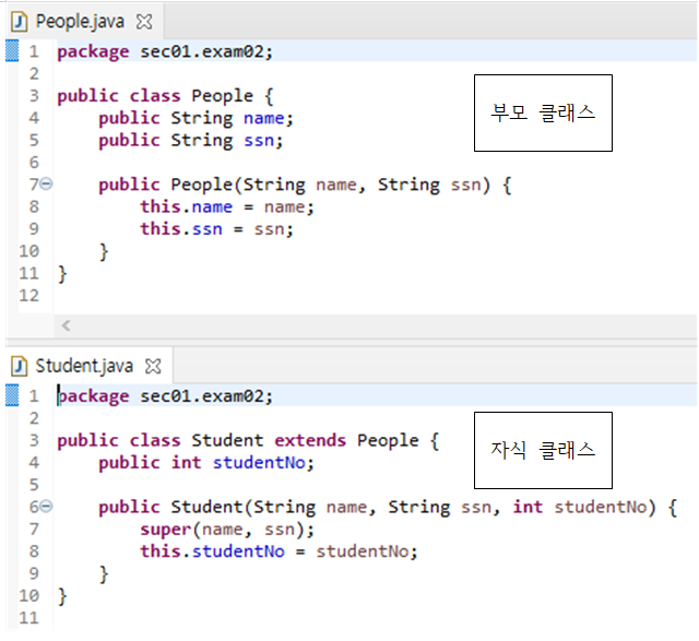 class 자식클래스 extends 부모클래스 {