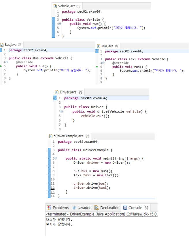 - 메소드를 호출할 때 매개값으로 부모객체와 자식객체 모두 사용할 수 있다.