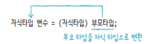 - (자식타입이 부모타입으로 자동 타입 변환한 후, 다시 변환할 때 사용됨)