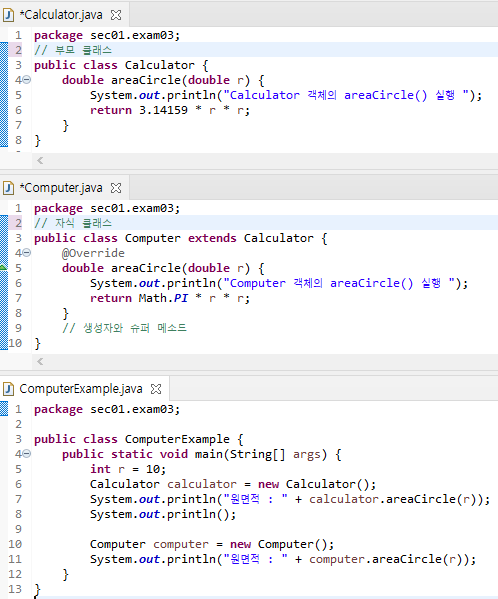 - 부모 메소드 호출 : 자식 클래스 내부에서 재정의된 부모 클래스 메소드를 호출해야 하는 경우
